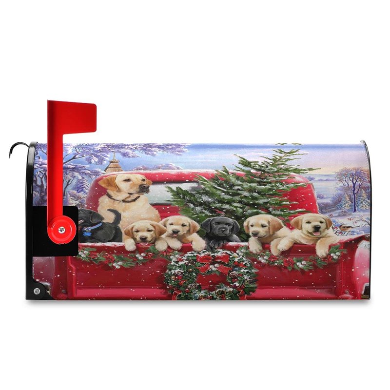 Christmas Red Truck Golden Retriever Dog Magnetic Mailbox Cover Standard 21 X 18 in Winter Snowflake Xmas Tree Snowman Mail Box Covers Decals Wraps Post Box Outdoor Decorations