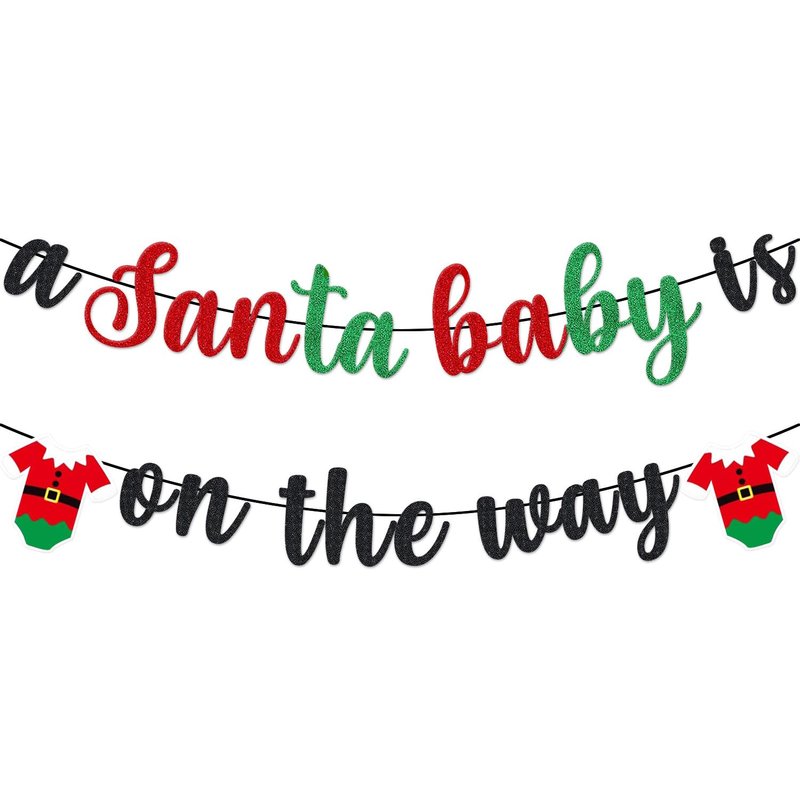 - What you will get: glitter "a Santa baby is on the way" banner with 2pcs santa baby Christmas theme pattern.Perfect for Christmas baby shower gender reveal party decorations.