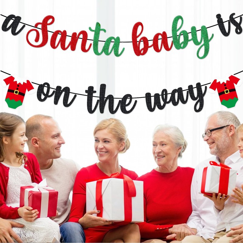 - The "a Santa baby is on the way" banner is perfect for Christmas themed baby shower party decorations, baby boy or girl birthday party, Christmas gender reveal baby shower birthday party decor. Must will create a cheerful atmosphere for your baby shower party and highlight your gathering, your baby,family and friends will love it.
