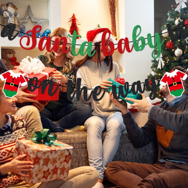 - The "a Santa baby is on the way" banner is perfect for hanging from anywhere you want, such as kitchens, bathrooms, backyards, gardens, porches, doors and so on, creating a happiness atmosphere to celebrate Christmas.