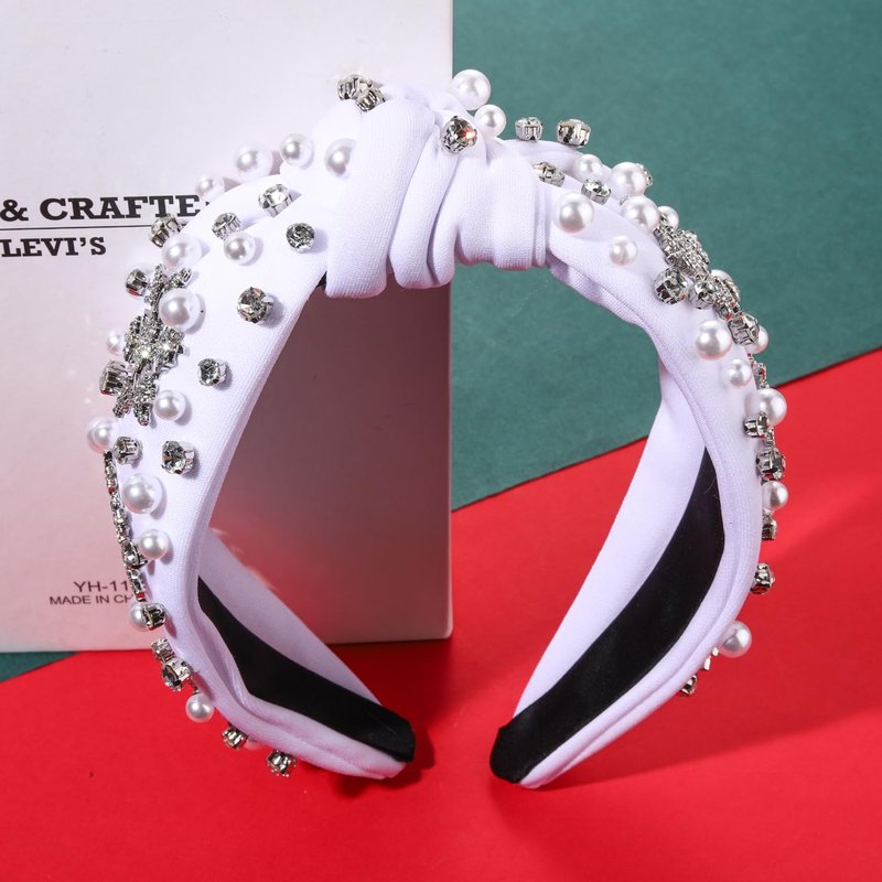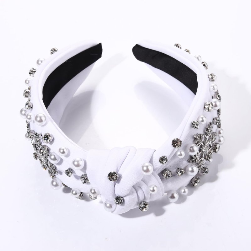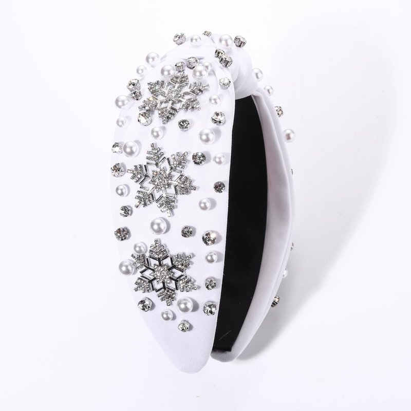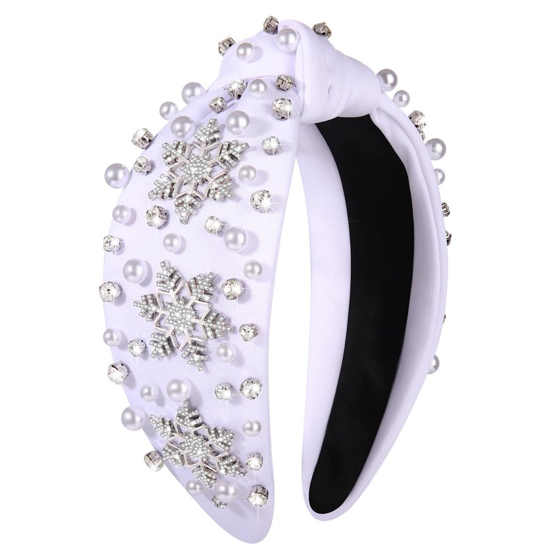 - ☆Christmas Snowflake Headband :Look festive and stylish this holiday season with this beautiful, white pearls rhinestone jeweled Snowflake knot headband! Add some Christmas cheer to your wardrobe - it's the perfect hair accessory for any winter outfit!Our Christmas Headbands are such cute, trendy, and stylish hair accessories to complement almost any outfit. Embellished with an array of unique gems, including snowflakes, these comfy holiday headbands are sure to turn heads!