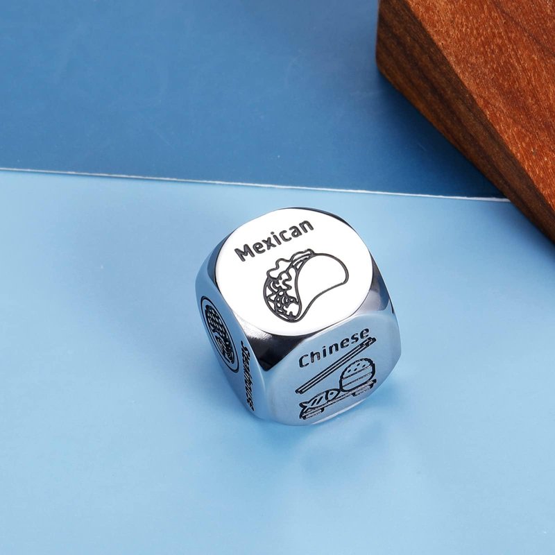 - ❥ Food Decider Dice Gifts for Him Her ❥: Are you hesitant about what to eat on a date? This dice provides you with six choices, which are Fast Food, Mexican, Chinese, Italian, Sushi, Steakhouse. Perfect date night ideas to add fun and interactivity for you and your lover. Gifts for boyfriend, boyfriend gifts, gifts for him boyfriend, gifts for girlfriend, girlfriend gifts, girlfriend birthday gifts, gifts for husband from wife, husband gifts from wife, gifts for couples.