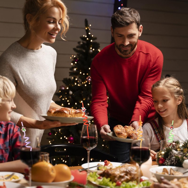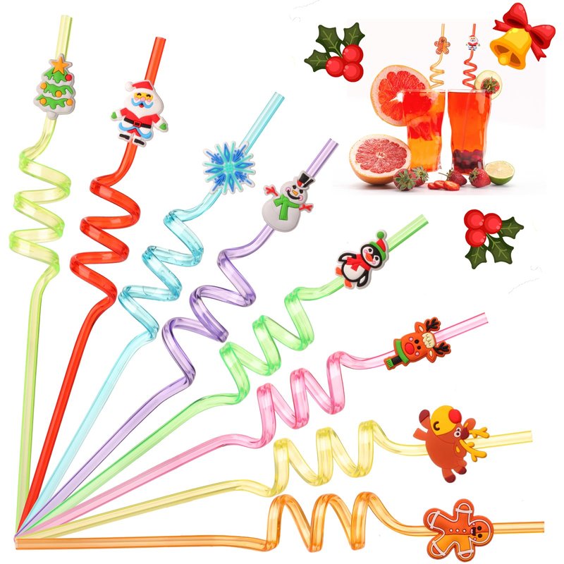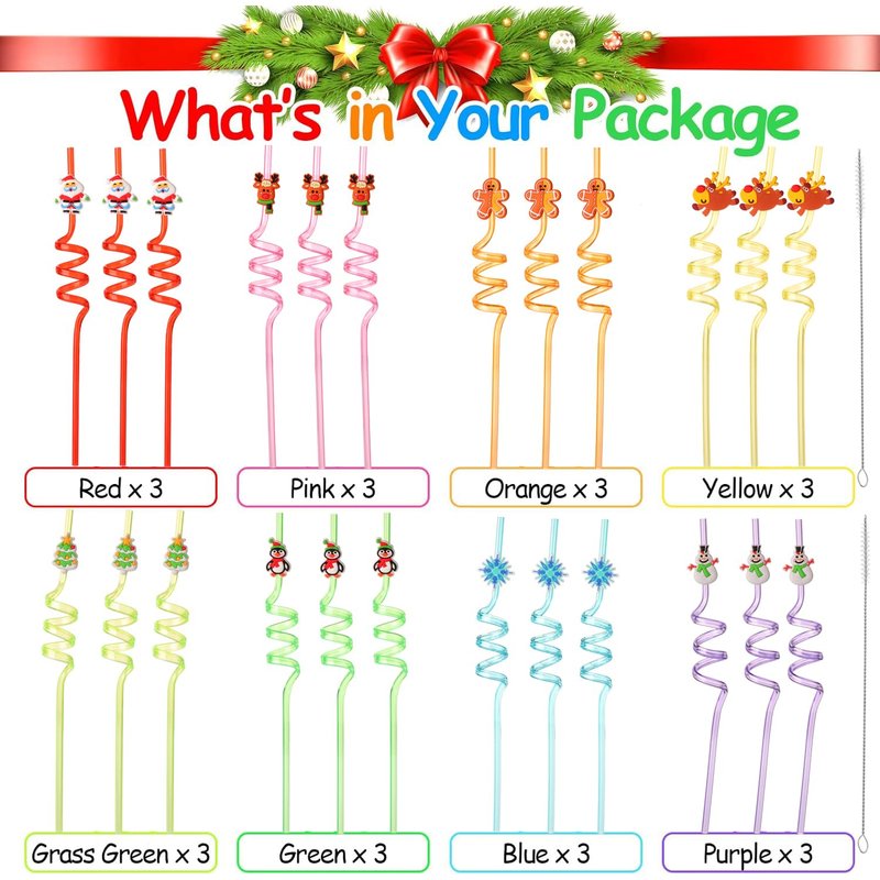 - Packing List:Packed with 24 Christmas patterned curly straws and 2 cleaning brush , 8 different design styles,3 straws in each style ,The pattern on the reusable straw is lively and lovely, with bright colors,These Christmas straws will add fun and fascinating Christmas elements to your Christmas party!