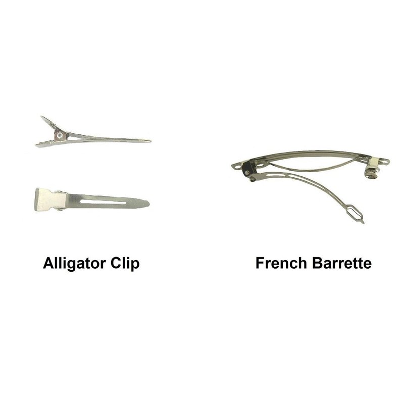 - Mounted on small french barrettes OR partially lined alligator clips.
