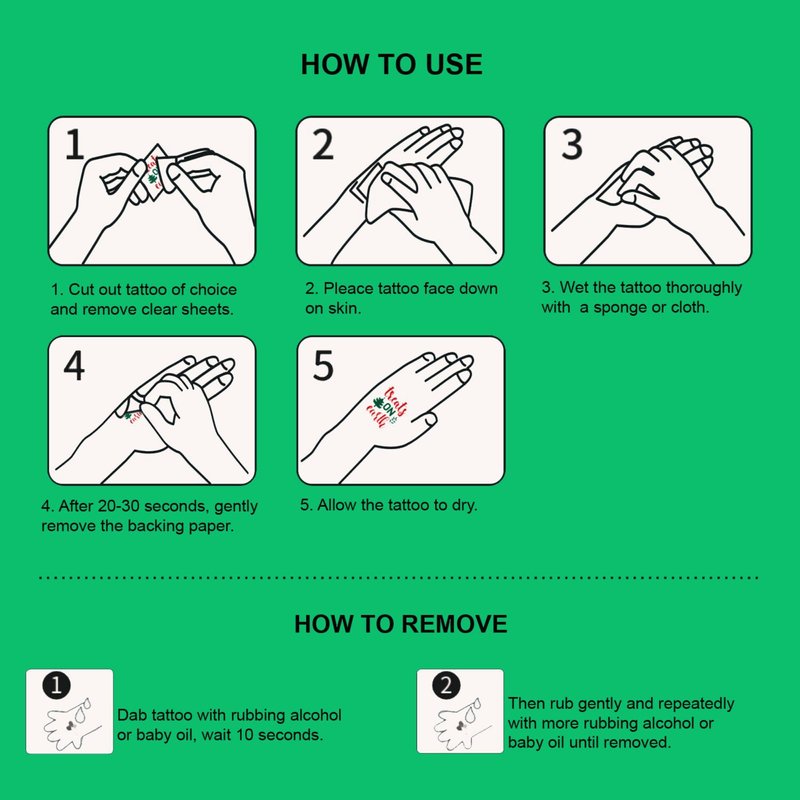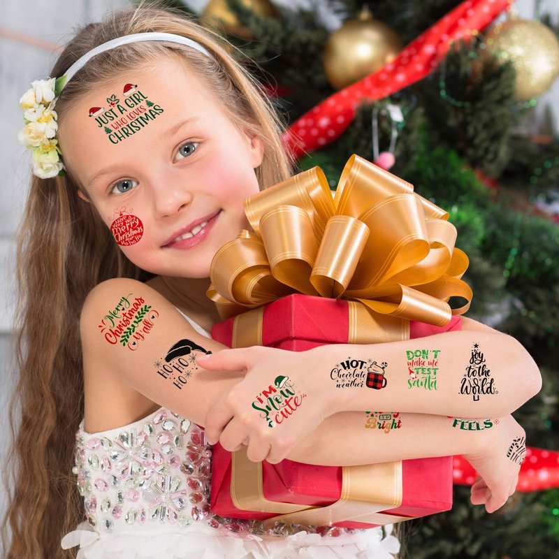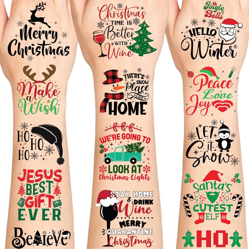 - 💙 VERSATILE USE: The ChristmasTattoos can be applied on body parts like arms, face, hands, shoulders, legs, wrists. Make you look cool and fun on parties. Also perfect as parties favors and Christmas gifts