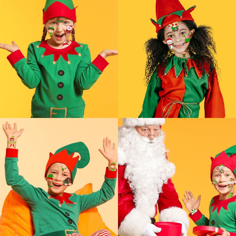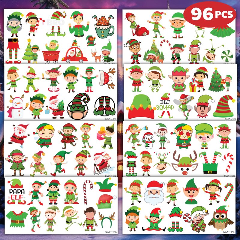 Christmas Temporary Tattoos Themed Merry Christmas Birthday Party Decorations Supplies 96PCS Party Favors Gift Ideal for Boy Girls Cute Noel Xmas Santa Claus Prizes Themed (Elf)