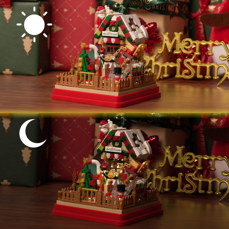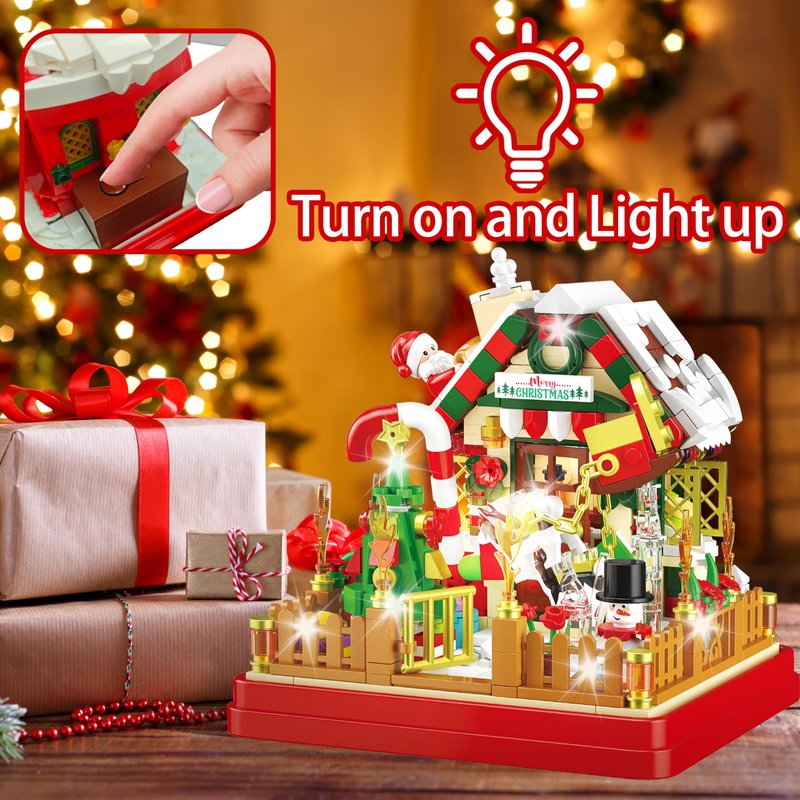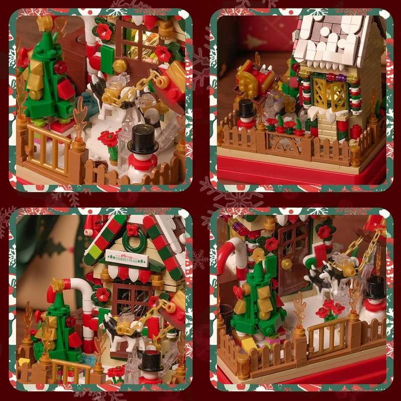 - Festive Christmas Design with LED Lights: This building block set features a delightful Christmas-themed candy hut with Santa Claus, snowman, sled dog, Christmas trees, and other holiday elements. The integrated LED lights add a magical glow, enhancing the holiday atmosphere.