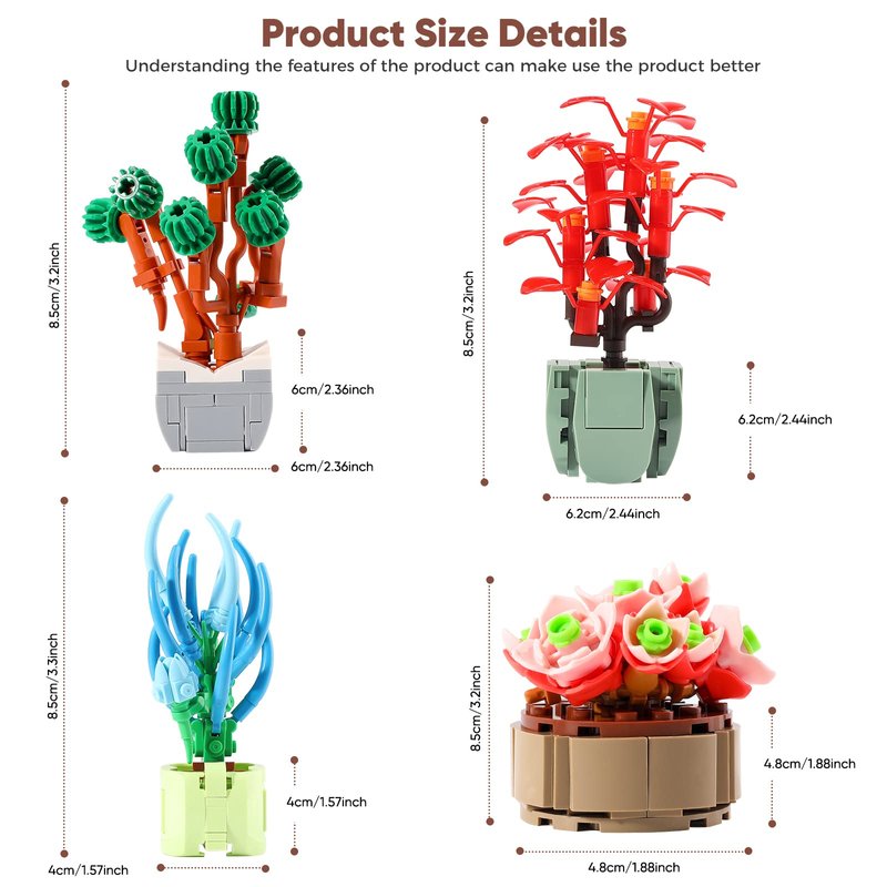 - 【Creative Decoration Building Blocks】: Each succulent figure is made up of 30-50 building blocks.It will promote child's hand-eye coordination, divergent thinking, problem-solving skills, inspires creativity and brain development.It is also the great decoration for home desk.