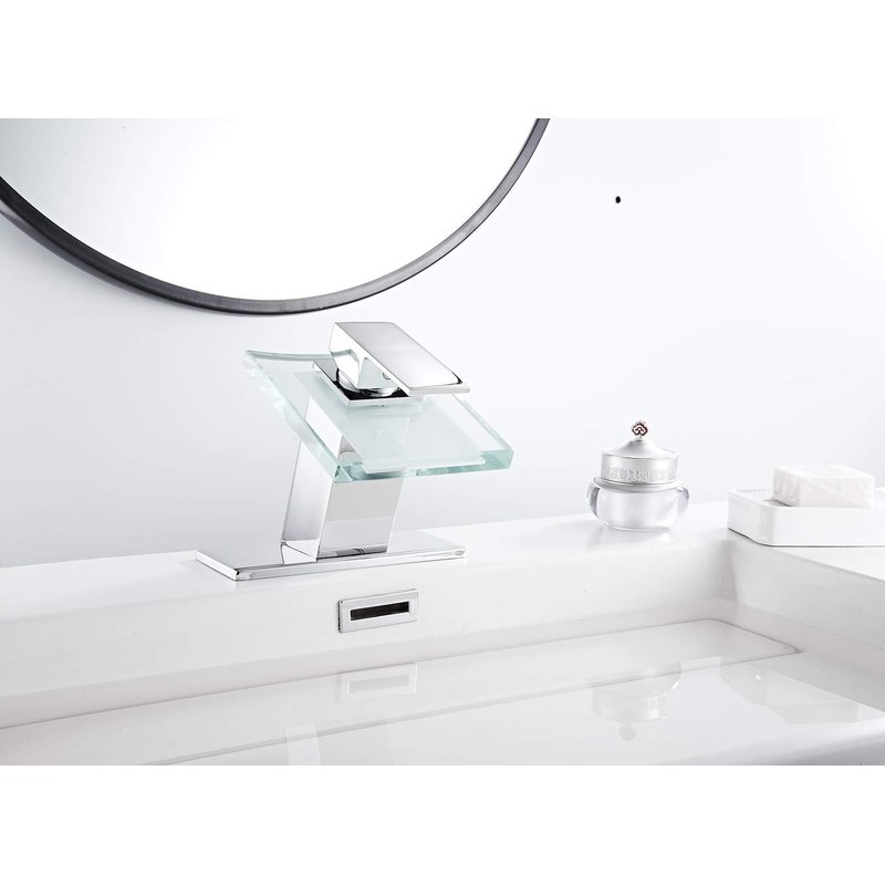 - Waterfall bathroom faucet provides a clear and steady laminar stream, that provides a beautiful water presentation.Clear glass style adds a gorgeous look to your bathroom