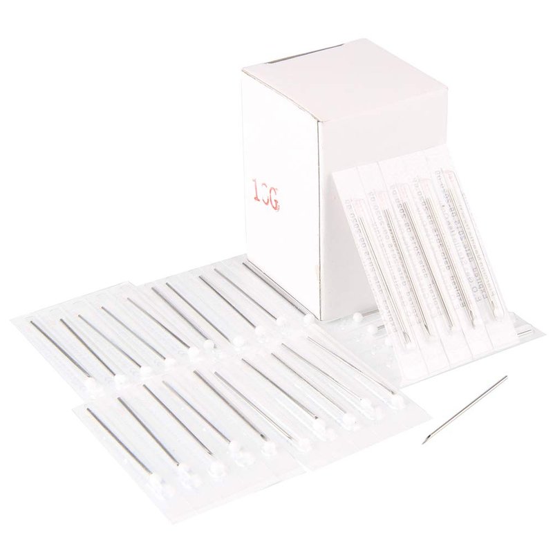 All needles are individual packaged and has been pre-sterilized w/ E.O. Gas (ethylene oxide). Protective sterile rubber tip on each needle. Surgical grade steel, no allergic reactions. Needles are hollow, tri-bevelled and laser sharp.