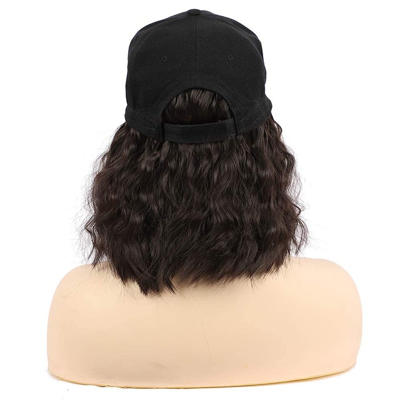 CHRSHN Hat Wig for Women, Short Wave Baseball Cap Wig with Curly Synthetic Hair Extensions, Adjustable Brown Black Baseball Hat Wig