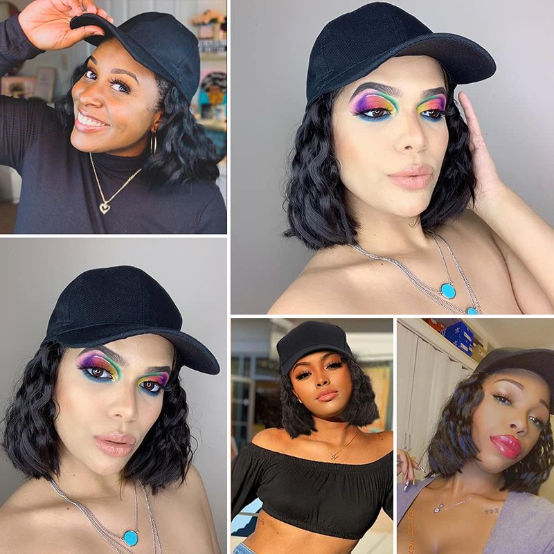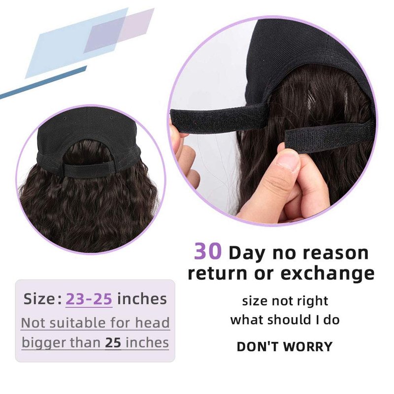 - HAIR STYLE:Short curly wave baseball cap wig are made from high-quality synthetic fibers permanently attached hair adjustable straps to fit most size/shape heads