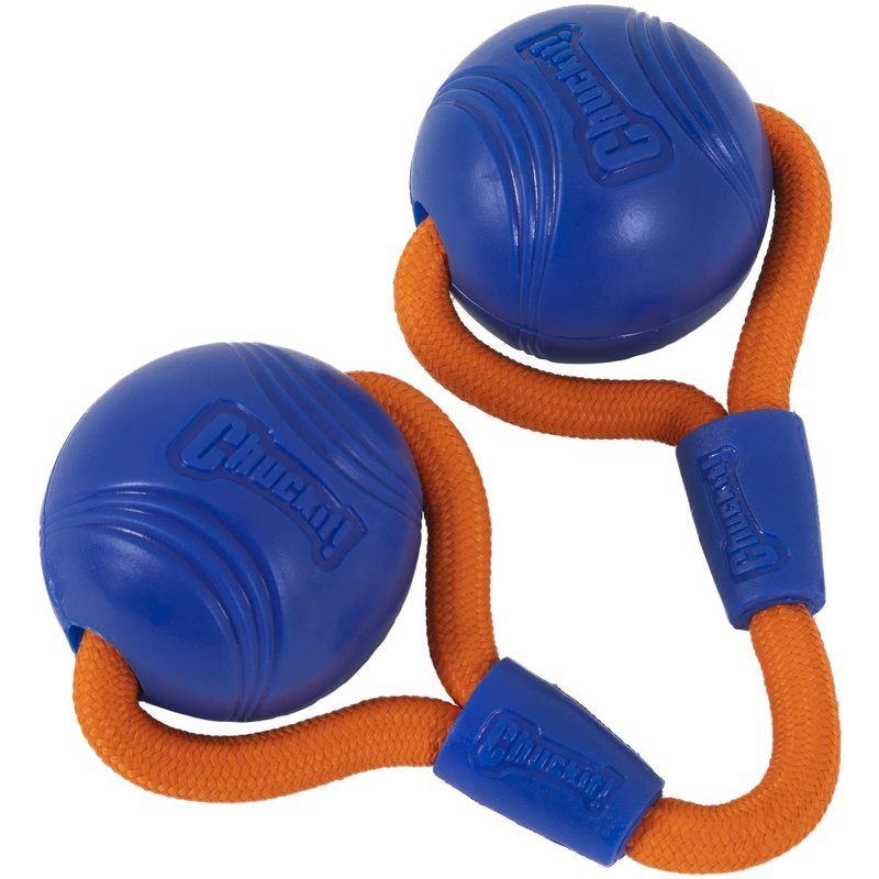- Chuckit Crunch Duo Tug: Designed to satisfy your dog's instinctual curiosity for sounds, the Super Crunch Ball pairs up two Chuckit! Balls with an elastic tug and a crackling, crunchy sound your dogs will love during games of toss and tug