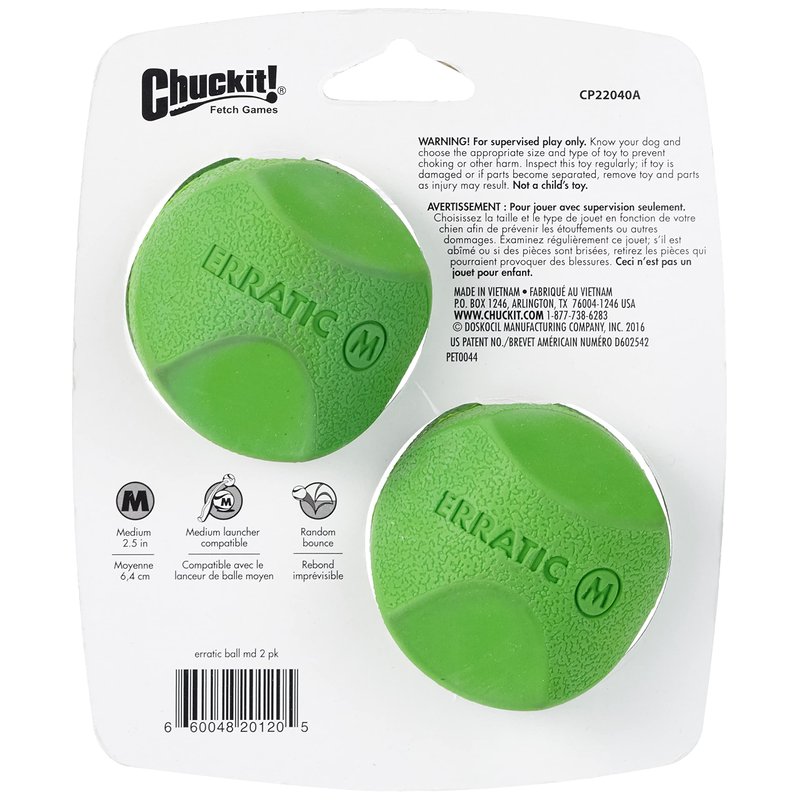 Chuckit! Erratic Ball Dog Toy, Medium (2.5 Inch), Pack of 2 Indoor and Outdoor Dog Toy