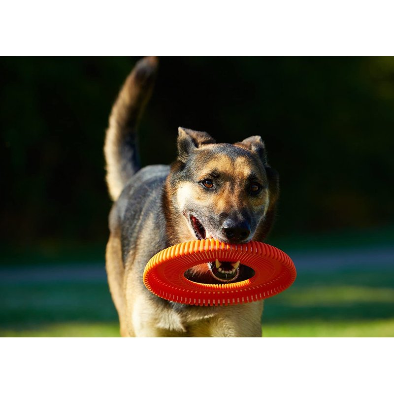 - Make Fetch Happen: The Rugged Flyer dog toy is designed with over-molded TPR ridges that provide excellent bite zones for your dog, and it rigid polypropylene core withstands the rough play and tough jaws of active dogs