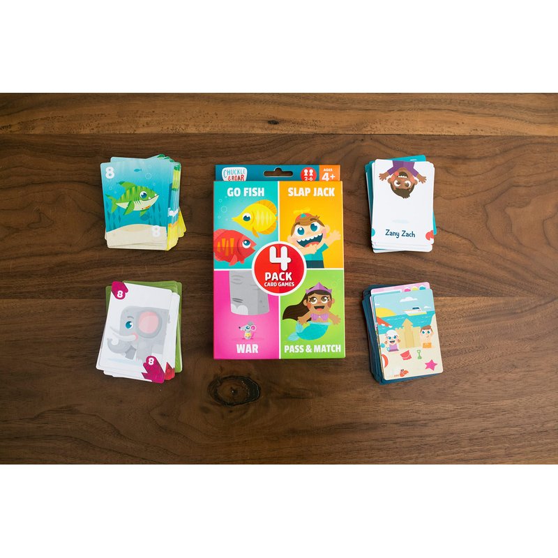 Chuckle & Roar - Classic Card Games 4pk - Ages 4 and up - Family Game Night - Go Fish, Slapjack, War, Pass and Match