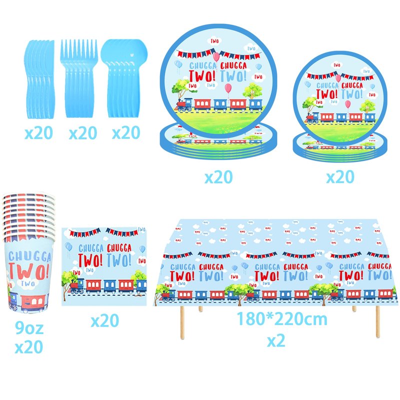 - These train party tableware kit can serve 20guests, These train party decoration kit will make your table settings look fantastic and all your guests will be happy.