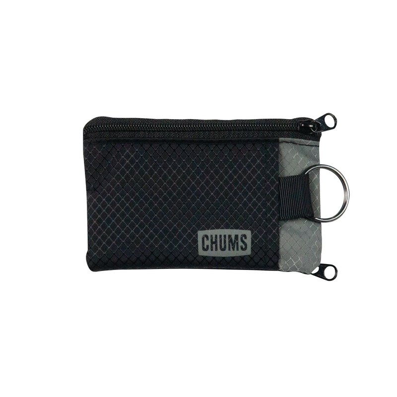 Chums Surfshorts Wallet - Lightweight Zippered Minimalist Wallet with Clear ID Window - Water Resistant with Key Ring (Black/Gray)