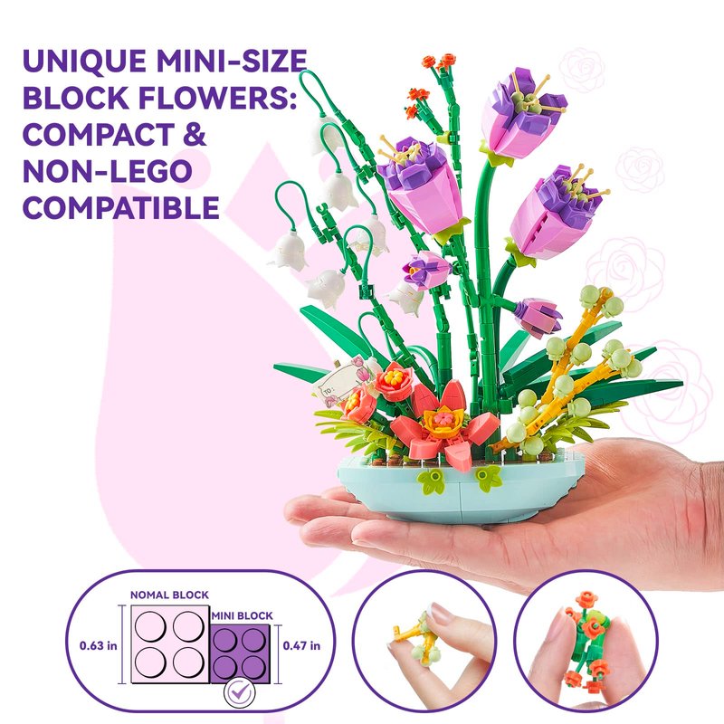 - Exceptional Miniature Design: The ChunBrommiSam Mini Brick Bouquet Flower Building Kit showcases the beauty of botanical arrangements in an appealing miniature form. Compact enough to fit in the palm of your hand, these intricately designed mini flower bonsai add an element of charm to your desk, bookshelf, or table.