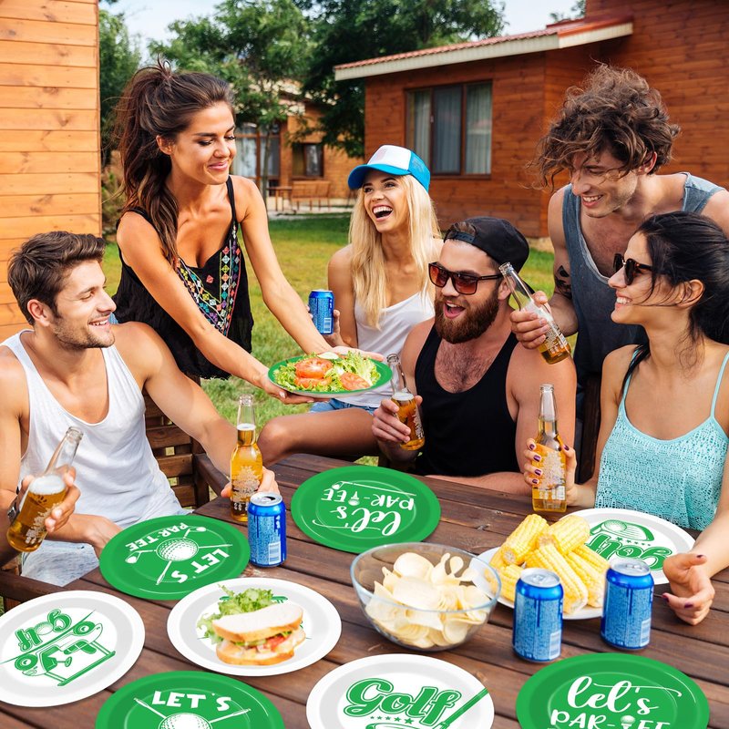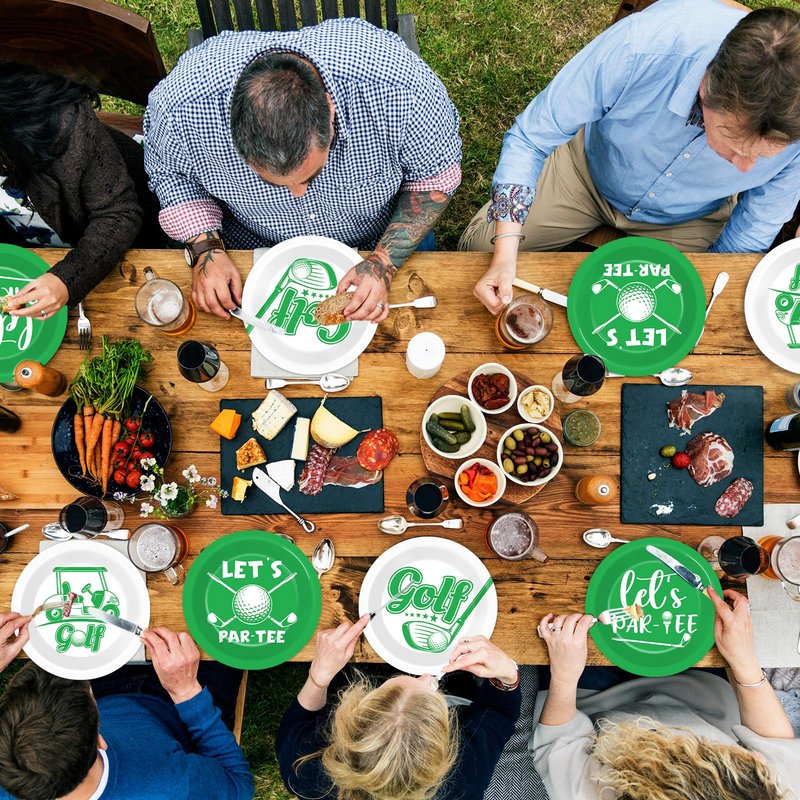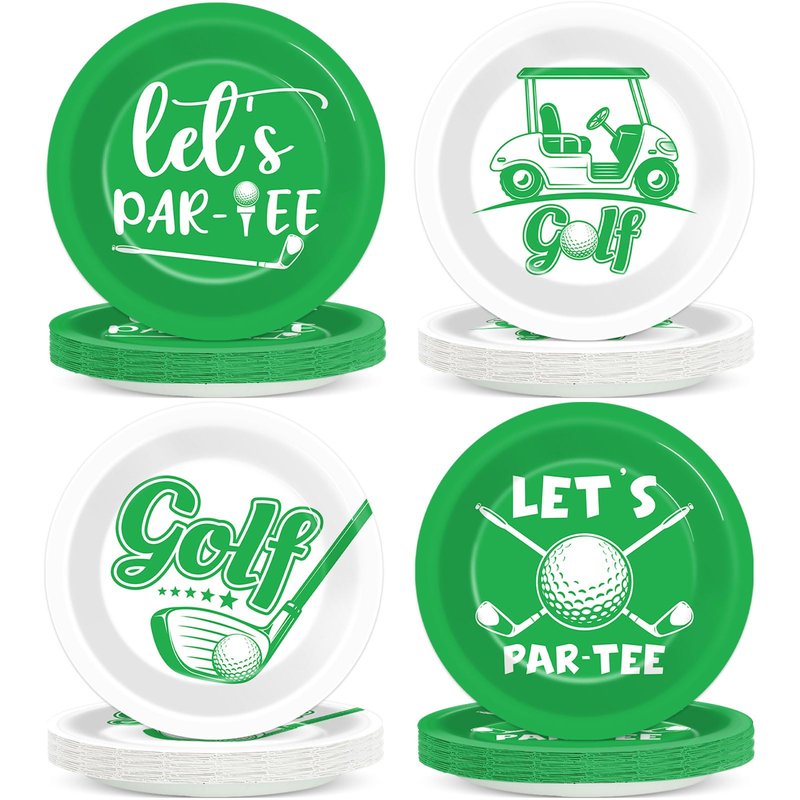- Packing content: These golf party decorations include: 48pcs 7-inch golf dessert plates in 4 different designs. Brighten up your table setting with our golf dinner plates that exude an appealing and cheerful atmosphere, ideal for your golf-themed party or golf birthday party.