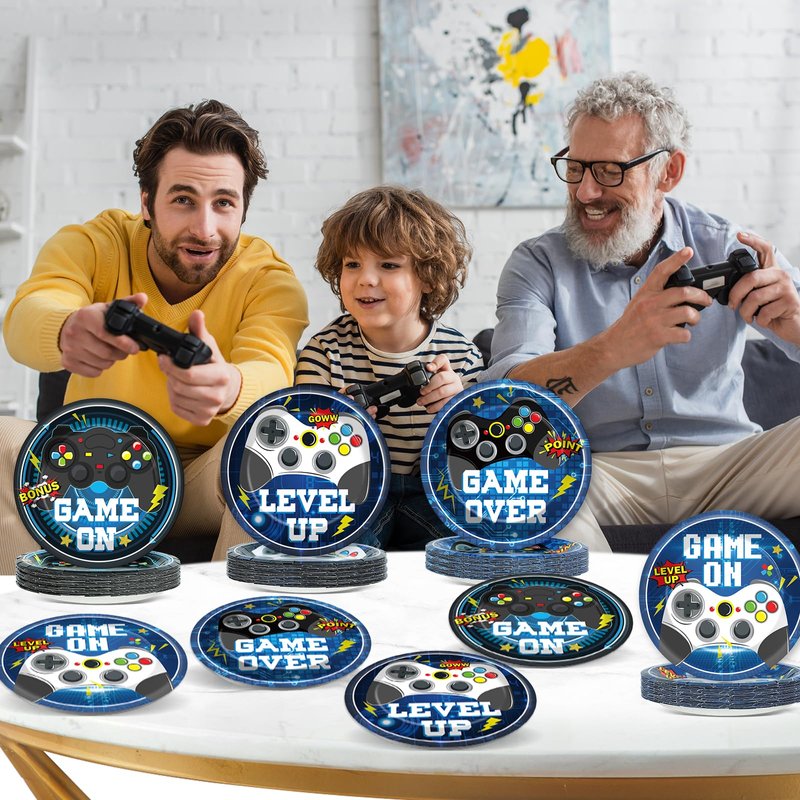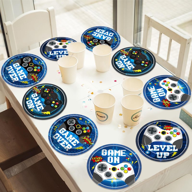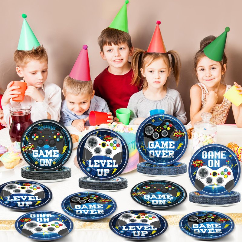 - Package includes: You will receive 48 pieces of 7-inch video game themed paper plates in 4 different styles which enough to meet your needs of using and sharing. Adding a pleasant atmosphere to welcome the Game Theme party.