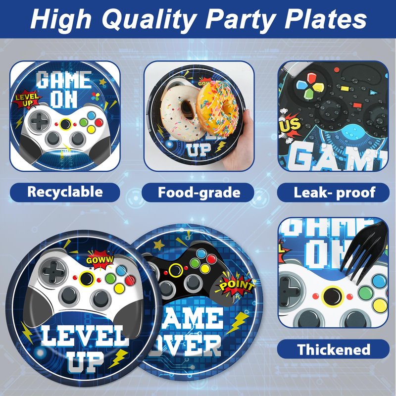 - Premium quality: Our video game party plates are made of sturdy paper which are not easy to be soaked through and to fade. The patterns and colors are beautifully printed and fade-resistant, providing you with a party full of a Gaming Party atmosphere.