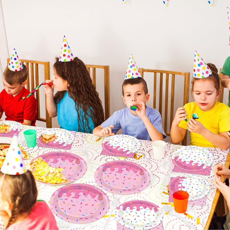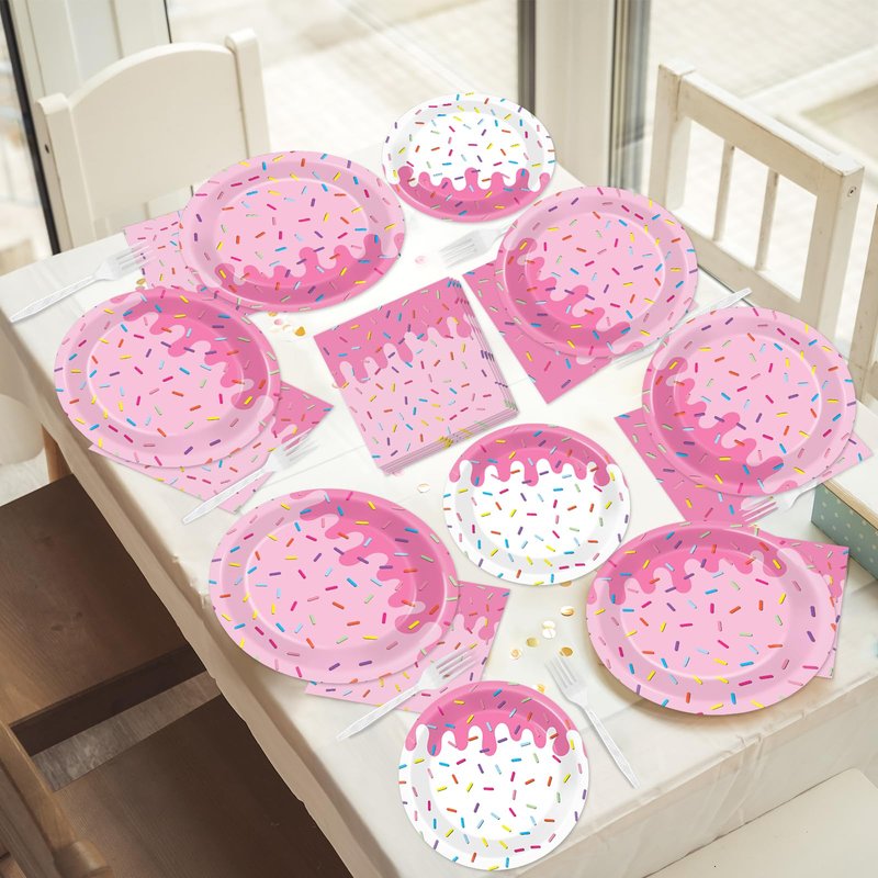 - Exquisite design: The cute and whimsical donut designs add a touch of fun and playfulness to your birthday party supplies. The vibrant colors and delightful donut patterns create a lighthearted and joyful setting that will put smiles on everyone's faces.