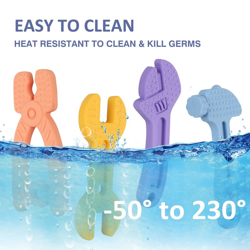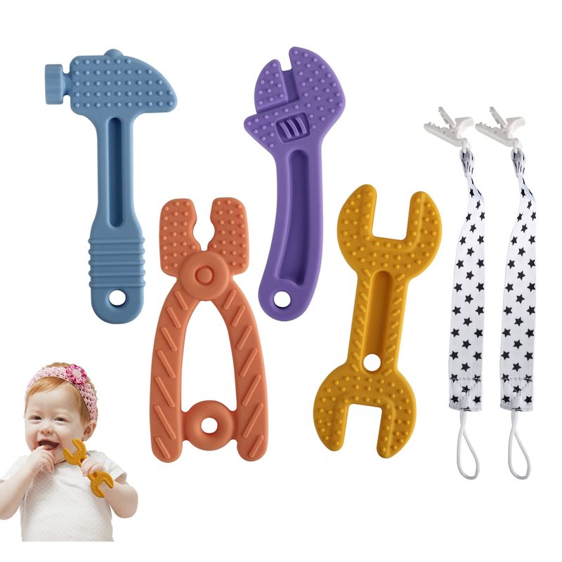 Chuya Baby Teether Toys, Baby Chew Toy for Babies 3-12 Months, Baby Teething Toys Teethers Teething Relief for Infant Toddlers, Hammer Wrench Toys Easy to Hold Silicone BPA-Free (4 Pack)