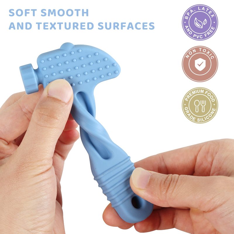 The hammer & wrench design helps to develop your baby's motor and play skills while providing soothing relief from aching gums and new teeth.