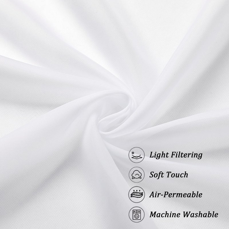 - Advanced Technology: This white sheer curtain is made of high twist 1050T yarn technology, which is better quality than ordinary curtains, such as being stronger and more durable. This curtain is certified by OEKO-Tex 100 to ensure that the curtain is safe and not easy to corrugate, which protecting the health of you and your family.