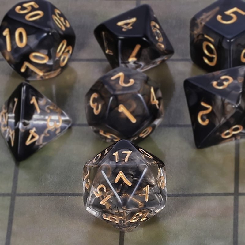 CiaraQ DND Polyhedral Dice Set for Dungeons and Dragons RPG MTG Role Playing Table Games-with 1 Dice Pouch (Transparent + Black Cloud)