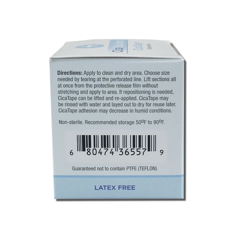 Soft Silicone tape - CicaTape is designed to hold firmly and removes without pulling the skin. Made with medical grade silicone, CicaTape can be used for holding IV lines, bandages and also may be applied directly to healed wounds where scar tissue has formed. CicaTapes translucent film allows the color of your skin to blend through to reduce the look of wearing a bandage. CicaTapes smooth surface film will make you forget you have it on. CicaTape can be applied to any clean and dry skin surface.