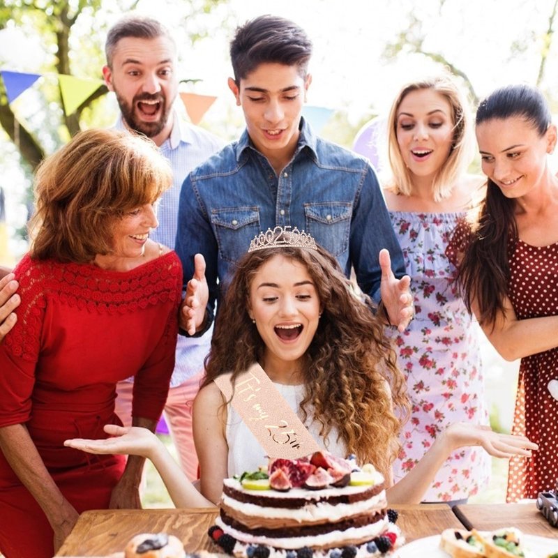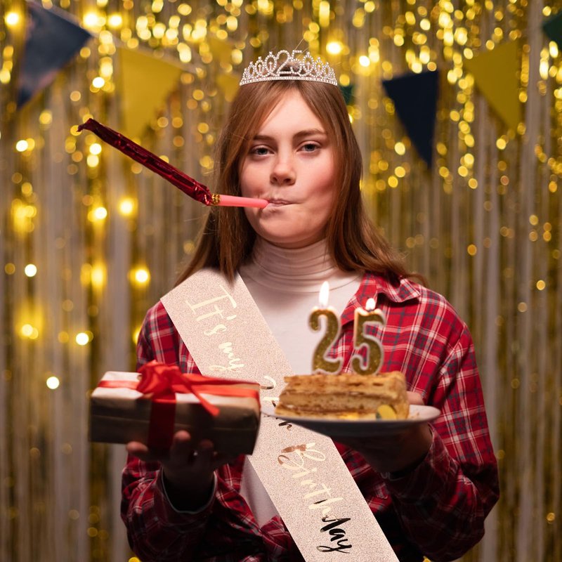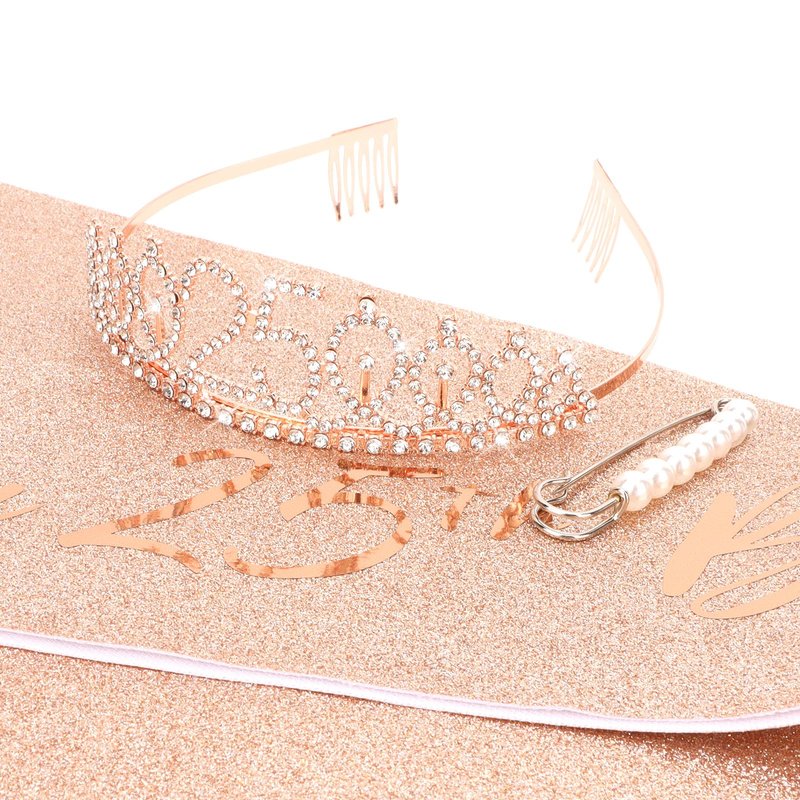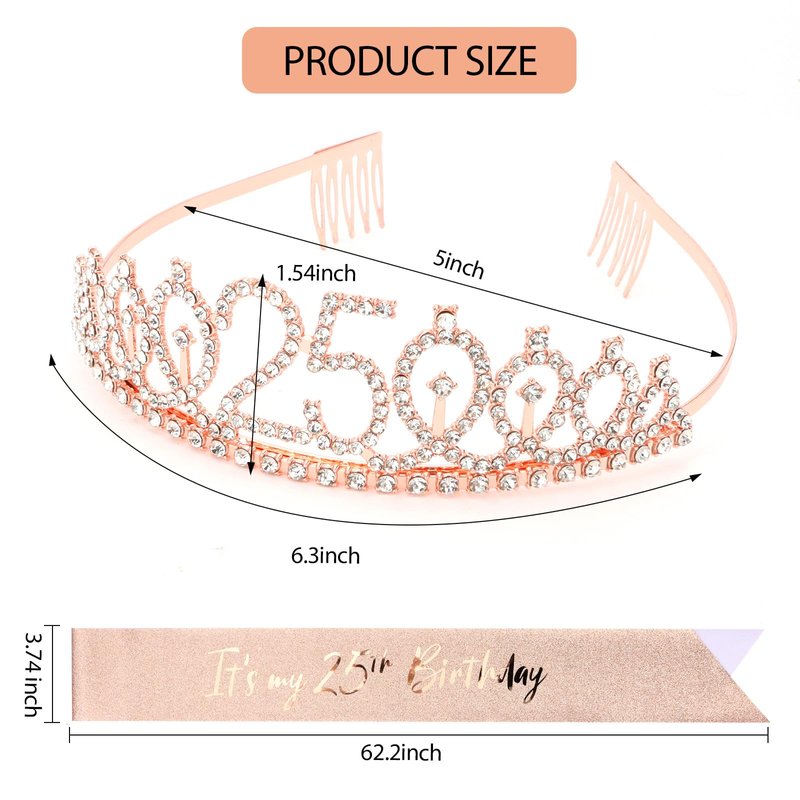 CIEHER 25th Birthday Crown + 25th Birthday Sash + Pearl Pin Set, 25th Birthday Gifts for Girls It's My 25th Birthday Decorations Women Happy 25th Birthday Party Supplies