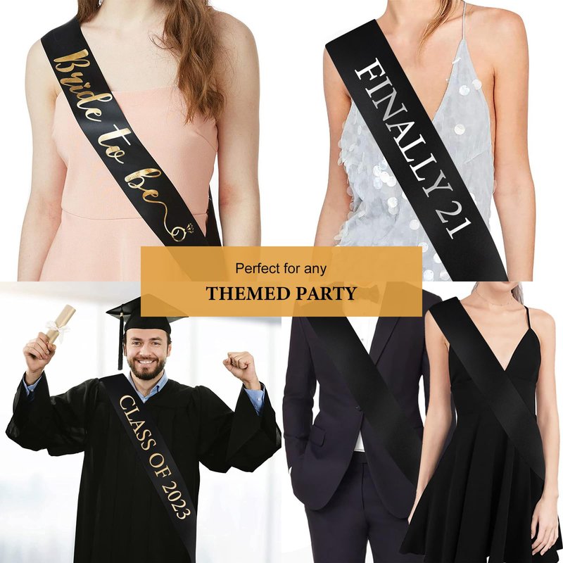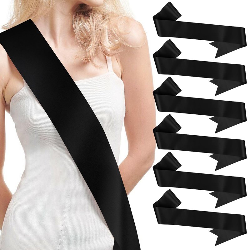 CIEHER 6 Pack Black Satin Sashes - Blank Custom Sash for Bridesmaid, Prom, Court, Mommy to Be, Birthday, Bride to Be, Bachelorette, Graduation - Make Your Own, One Size, 6 Pieces, Hairband