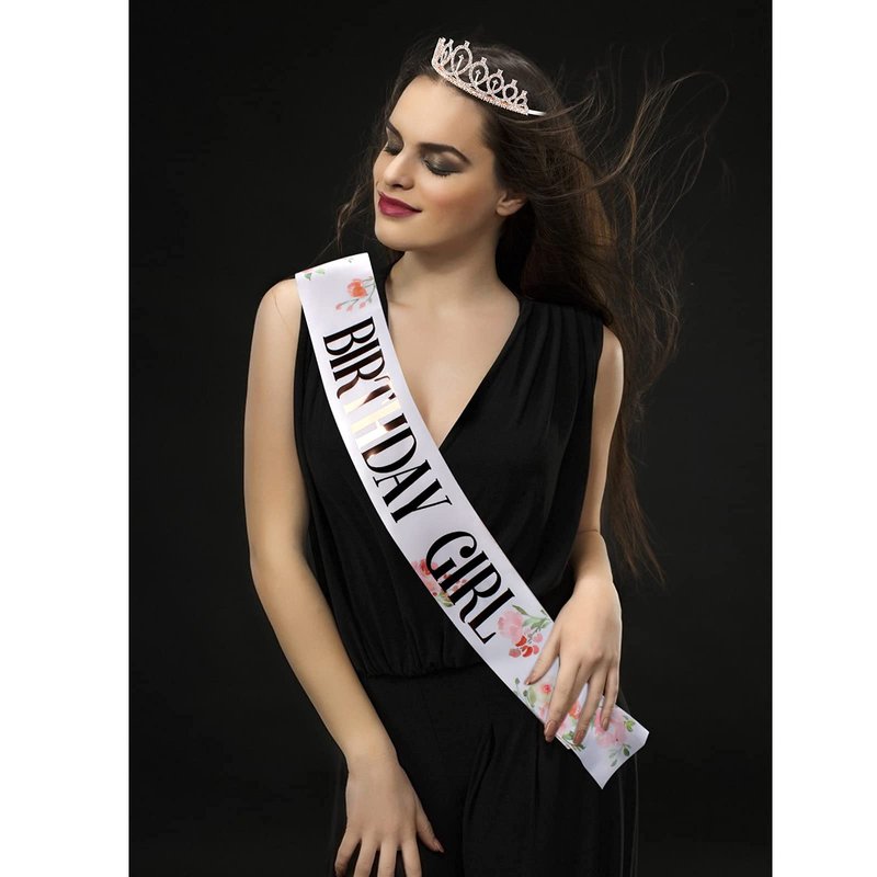 - Birthday Sash for Girls. Birthday sash made from soft ribbon fabric using hot pressed stamping foil will compliment any outfit and durable enough to last day into night. Flower pattern ribbon sash + rose gold lettering looks great on photos...It's perfect for those who obsesses over the perfect shot for Instagram.