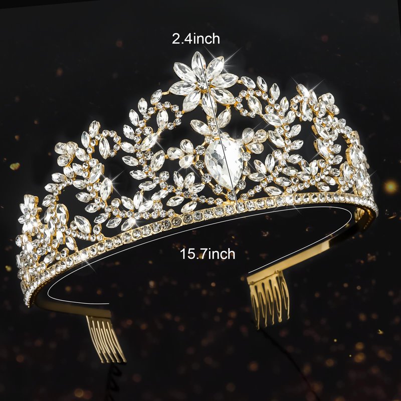 - Material - The shiny gold crown is made of alloy, rhinestone and crystal. It is a shiny, charming handmade product, suitable for women and girls.