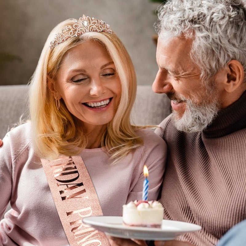 CIEHER Princess Crown and Birthday Sash Set, Birthday Crown Birthday Girl Crown Birthday Tiara for Women Birthday Princess Crown Birthday Decorations Birthday Sash for Girls Birthday Gifts - Rose Gold