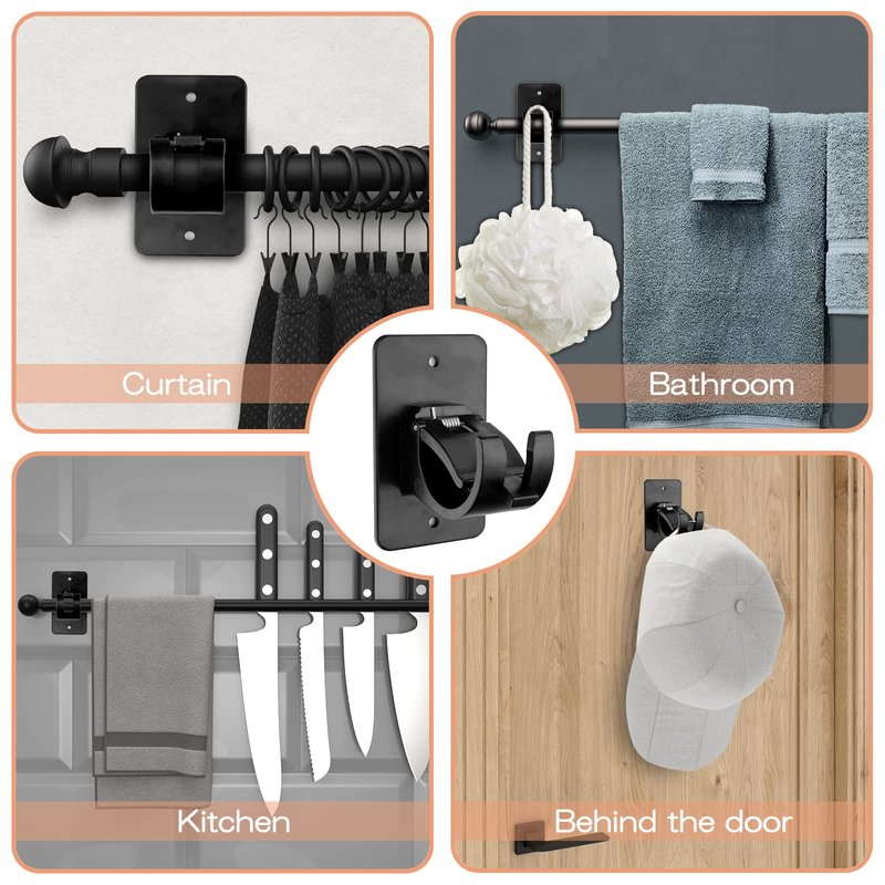 - 【WIDE RANGE OF APPLICATIONS】The practical curtain pole towel rod hooks are applicable for bathroom towel, window curtain, closet shelf, and so on. The curtain rod bracket is suitable for smooth glass, tile, marble, stainless steel and other smooth wall. Beautify your bathroom/bedroom/living room/office.