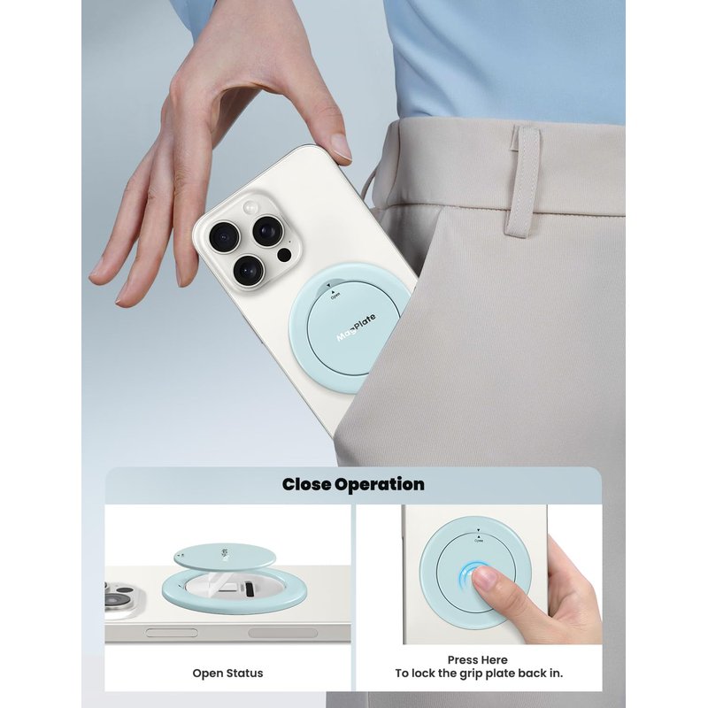 - đăMulti-FunctionăThis phone grip stand can be used as a mag-safe phone grip, desk top kickstand, Easy to operate the phone with one hand, as the rotatable centre, you can adjust reading angel as you want, hold the phone firmly and reduce the risk of accidentally dropping down.