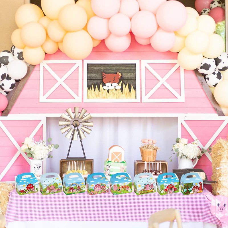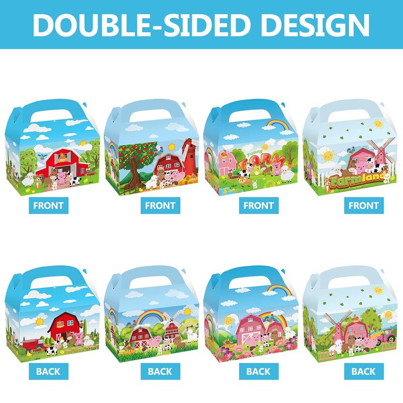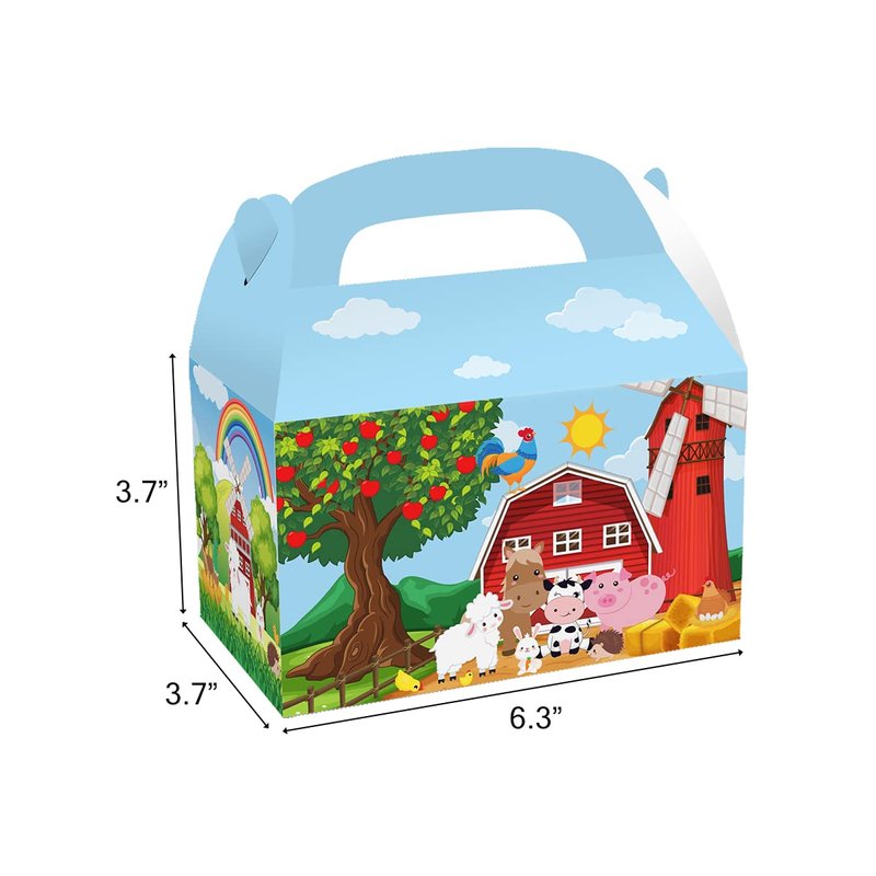 - Quality Material: These farmhouse animals goodie gift boxes are made of quality craft paper, safe and non-toxic, study and durable. Farm animals party treat boxes are printed in full color with both side print, Ideal for use as candy, chocolate, party favor treat boxes during barnyard farm animal parties and other celebrations