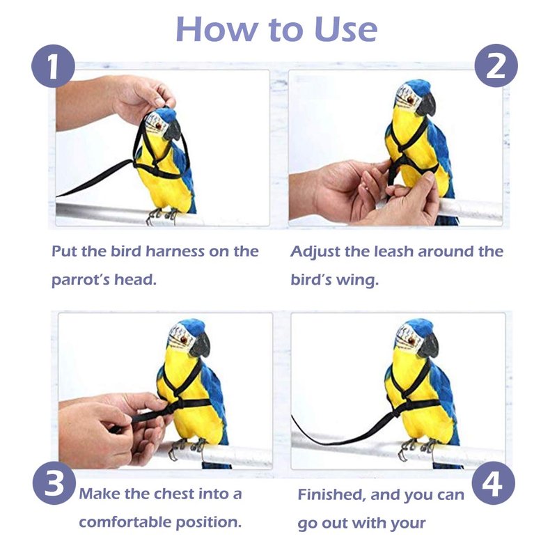 Bird Harness, Adjustable Outdoor Parrot Nylon Leash with Anti-bite Design for Outdoor Activities Training, Suitable for Easten Bluebonnet Parrot, Cockatoo, Parakeet, Doves (S)