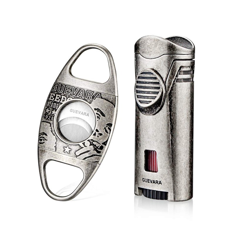 Cigar Cutter and Lighter Set Sharpening Blade Engraved Cigar Guillotine Lighter Torch with Stand Windproof Single Torch Butane Refillable Scorch Lighters