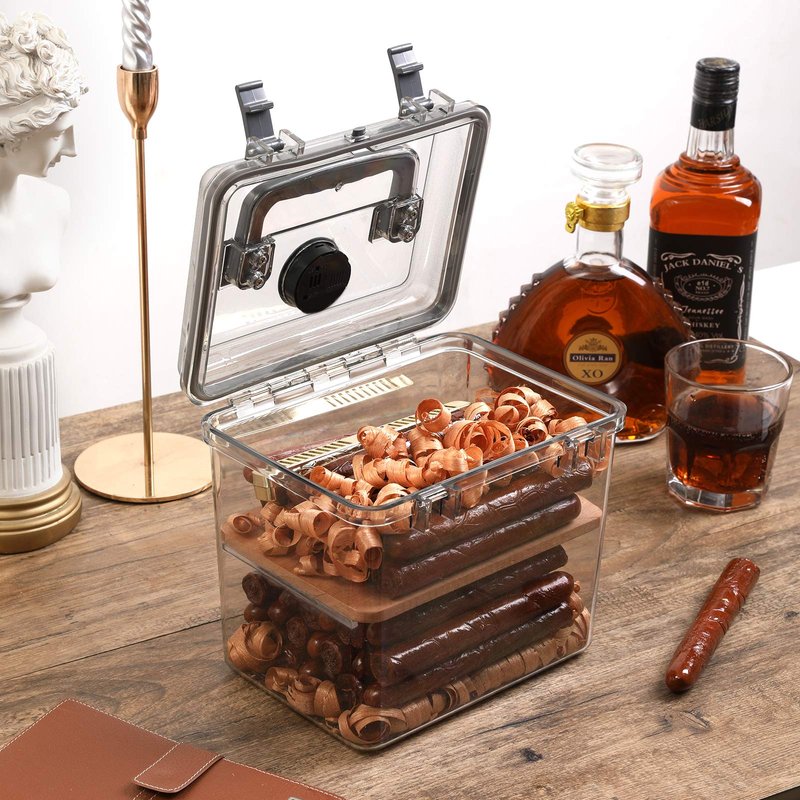 - Acrylic large-capacity cigar box:Top use matte design, feel better.top handle is easy to carry, and the digital hygrometer is easy to monitor. The box is sealed with a high-grade rubber gasket. The middle part is made of authentic Spanish.