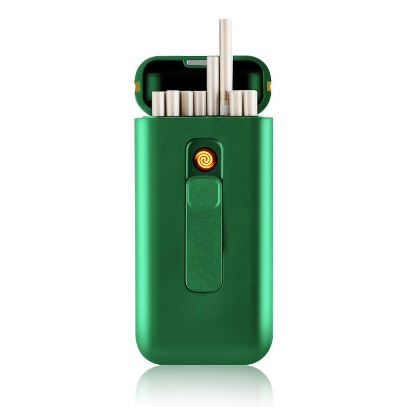 Cigarette Case with Lighter Cigarettes Box Portable 20pcs 100s Slim Cigarettes USB Lighters 2 in 1 Rechargeable Flameless Windproof Electric Lighter (Green)