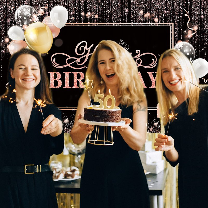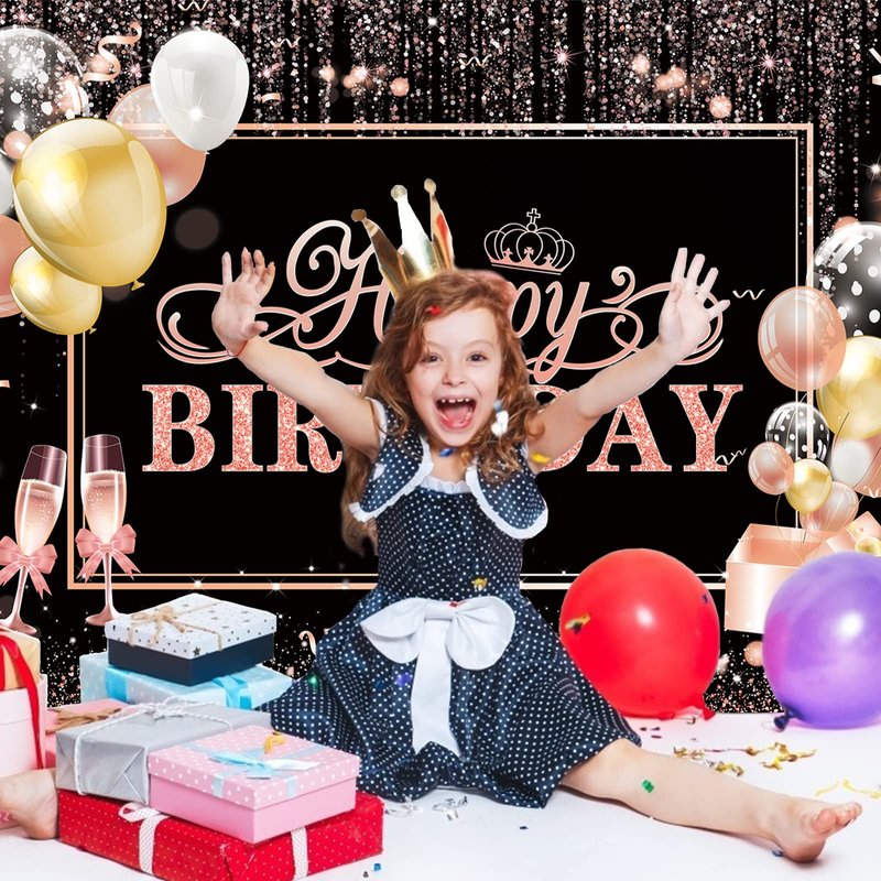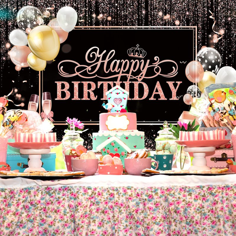 CIHER 184CM x 114CM Happy Birthday Backdrop Happy Birthday Decorations for Women Girls Happy Birthday Banner for Women Girl Party Supplies Rose Gold Birthday Party Decorations Backdrop Photography