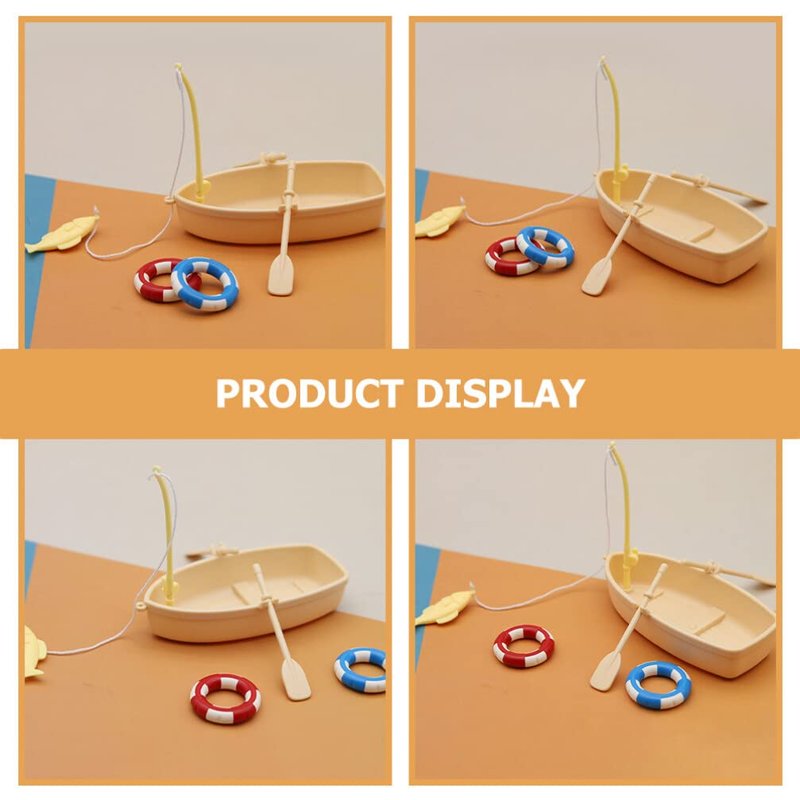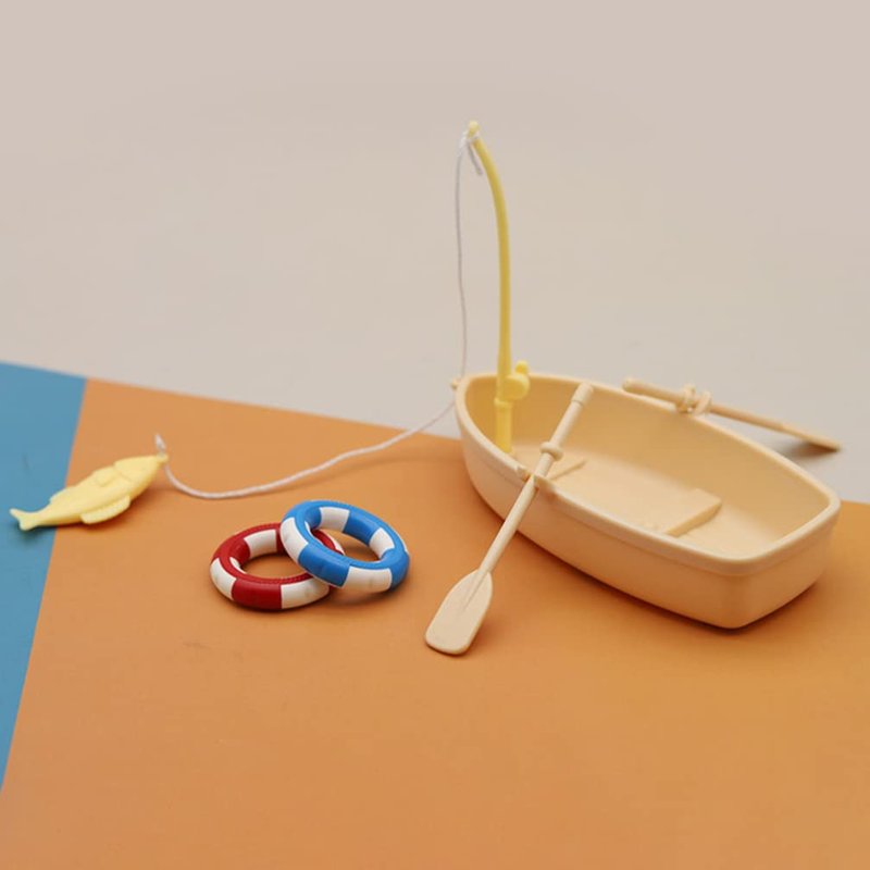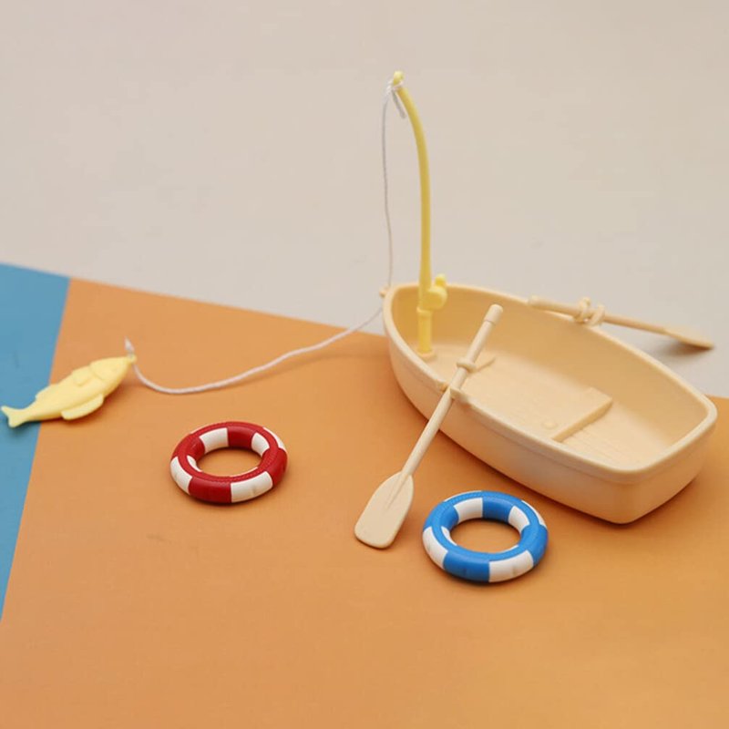 Ciieeo 1 Set of Miniature Boat Figure Plastic Fishing Boat Swimming Ring Chinese Style Boat Model Ocean Beach Fairy Garden Micro Landscape Dollhouse Ornament