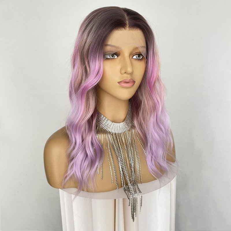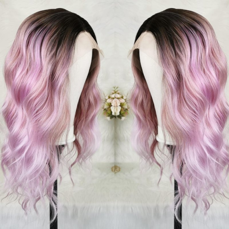 CIMITIKI Ombre Pinkish Mixed Purple Wig Rainbow Colored Highlight Synthetic Hair Pastel Rose Pink 13x4 Lace Front Wigs Loose Wavy 18Inch for Women Girls