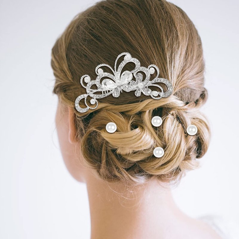 - 【HIGH QUALITY MATERIAL】--All bridal hair pins and sparkly side combs are made of high quality alloy with shining rhinestones and pearls decoration. Each pearl has a smooth surface and a shiny color. Excellent materials make them more pretty and delicate.