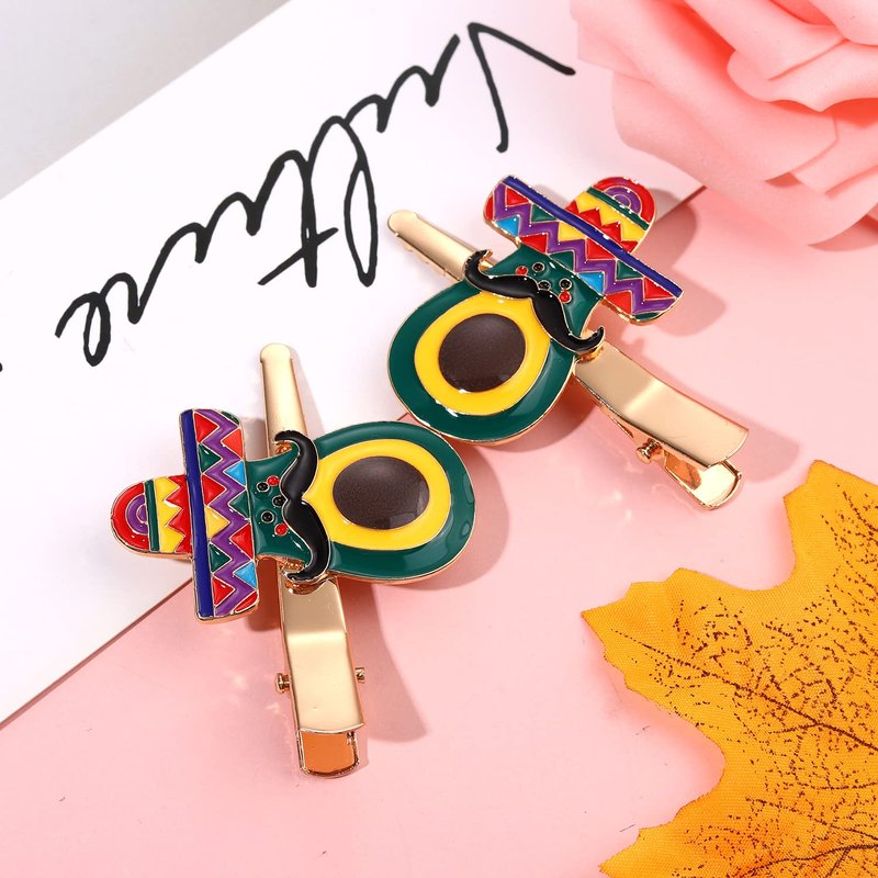 - ღ Mexican Hair Clips: Happy Cinco De Mayo! Don't forget a sombrero hat hair clips to complete your transformation! Our festive hair clips designed with a series of lovely Mexican elements, like sombrero hat, pinata, avocado, chili, cactus and so on. Great for Cinco De Mayo celebrations, these fun Fiesta hair accessory is sure to liven up your hairstyle and make you stand out from the crowd!
