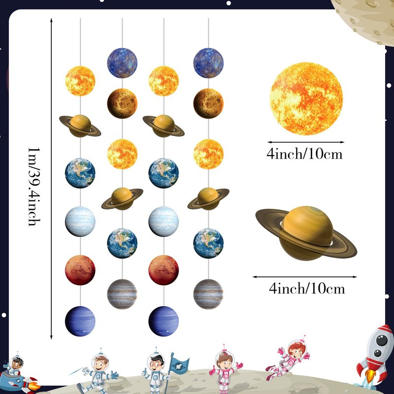- Sufficient Quantity: the package includes 8 pieces of outer space party hanging garlands while each outer space party paper garland has designed with the whole 8 planets of the solar system and the sun; You can use them to decorate your home, office, garden and anywhere you want to hold the party